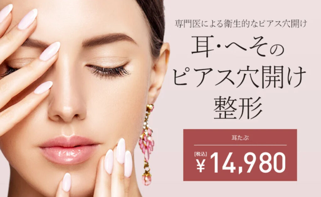 TCB東京中央美容外科は全国に50院以上も展開している大手美容クリニックで、ピアス穴あけでは耳・へそのピアス穴開け整形というメニューが用意されています。