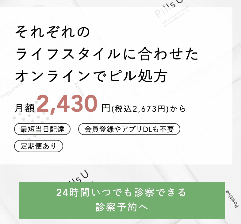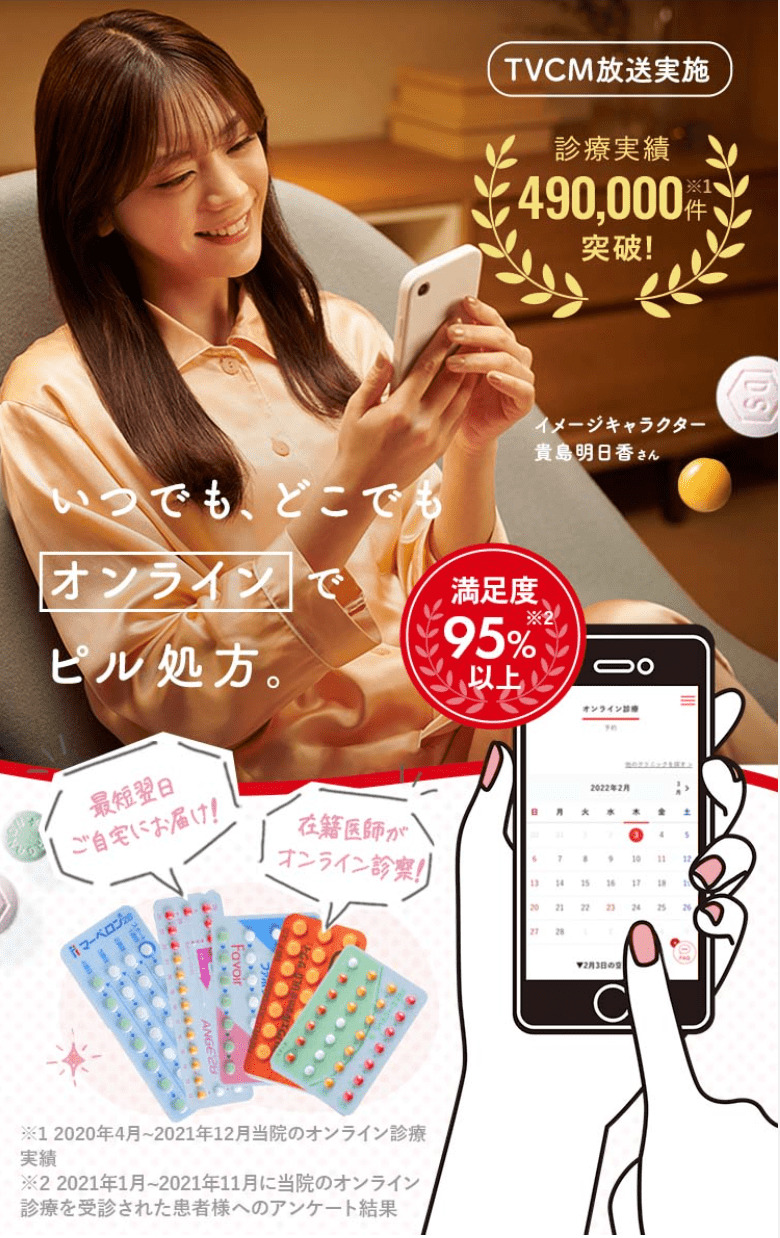 アプリダウンロード不要・所要3分のネット問診でお手軽ですよ。即日のピル処方が可能ですよ。