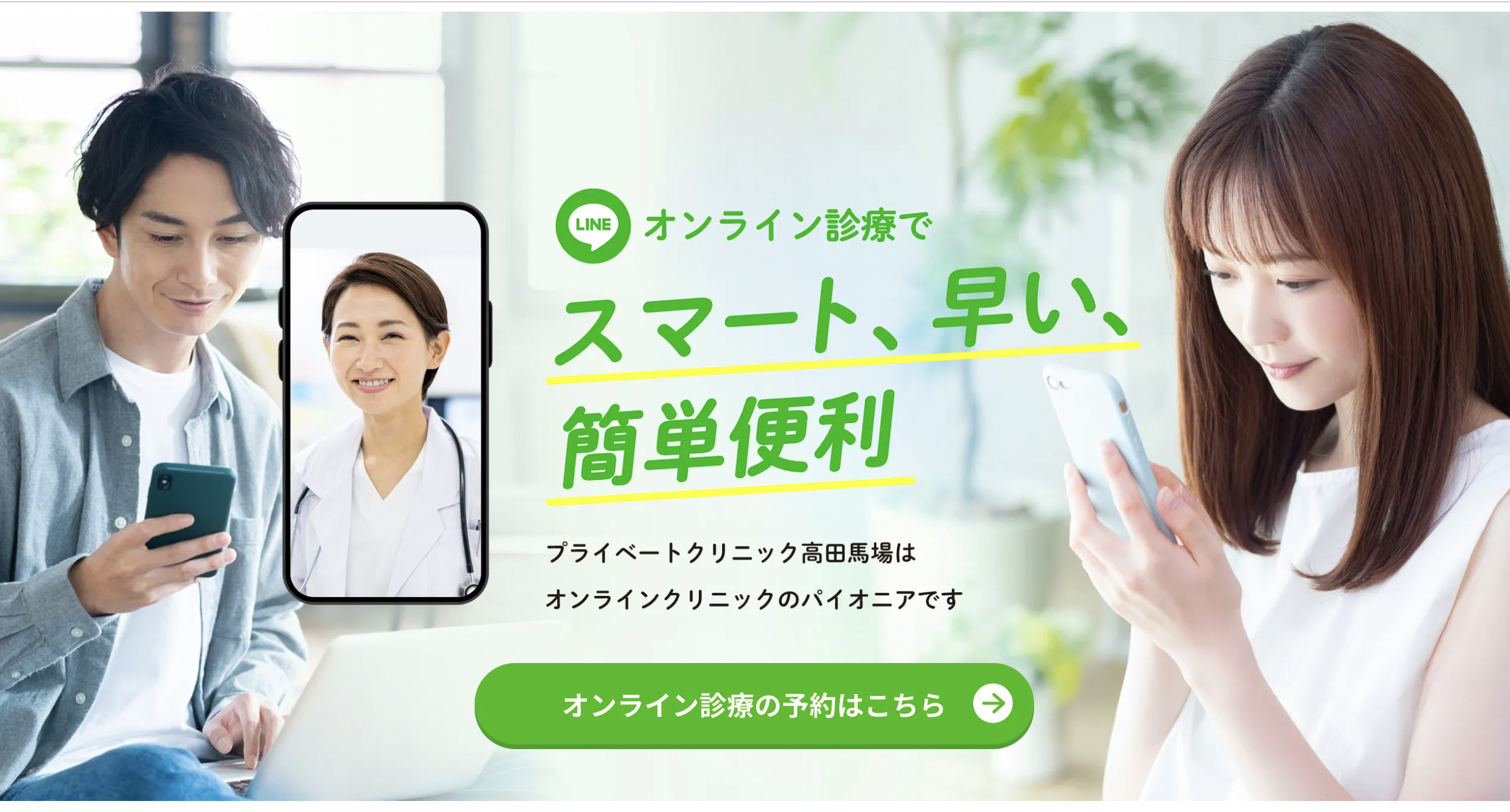 仕事や家事が忙しくてクリニックにいけない。そんな人におすすめなのがオンライン診療です。通院時間も待ち時間もいらず、初診からでも診察OKです。アプリ不要でスマホやPCで簡単に診療予約ができ、自宅や好きな場所から診察可能です。
