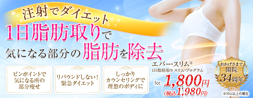 注射による痩身・部分痩せ、冷却による脂肪減少治療、ボツリヌス・トキシン注入による小顔・美脚術、内服薬・サプリ