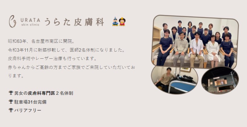 うらた皮膚科は、1988年から名古屋にある地元に根付いたクリニックになります。通常の皮膚科に通う患者も多いので、医療ダイエットをしているとバレたくない人でも安心して通うことができるでしょう。