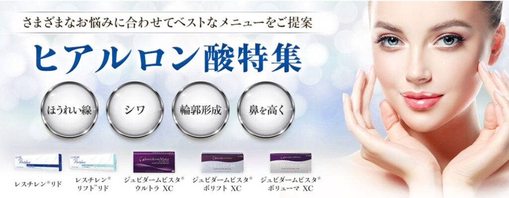 品川美容外科はヒアルロン酸注入ではレスチレンやジュビダームビスタなど、さまざまなヒアルロン酸から選べるのがおすすめポイントです。