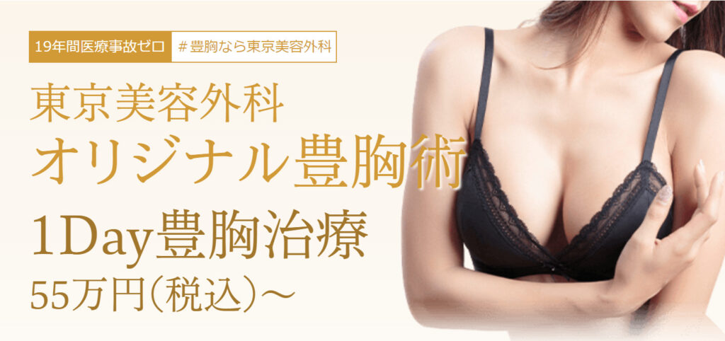 東京美容外科(TKC)は開院19年以上、全国18院以上の実績を持つ大手美容クリニックで、豊胸手術やバストアップには脂肪注入豊胸やシリコンバッグ豊胸などがあります。