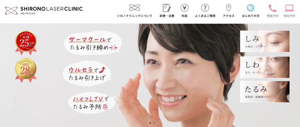 シロノクリニックは開院28年以上、症例25万件以上の実績を持つ美容皮膚科で、豊胸・バストアップではサーマクール(バスト)といったメニューが用意されています。