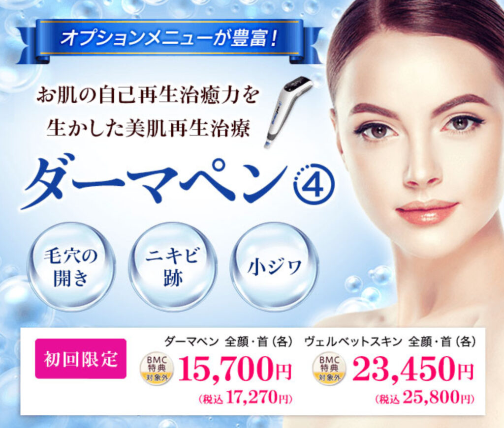 ダーマペンは極細針で肌の表面に小さな穴を開け、肌の自然治癒力を向上させる人気施術で、ダウンタイムはほとんどありません。