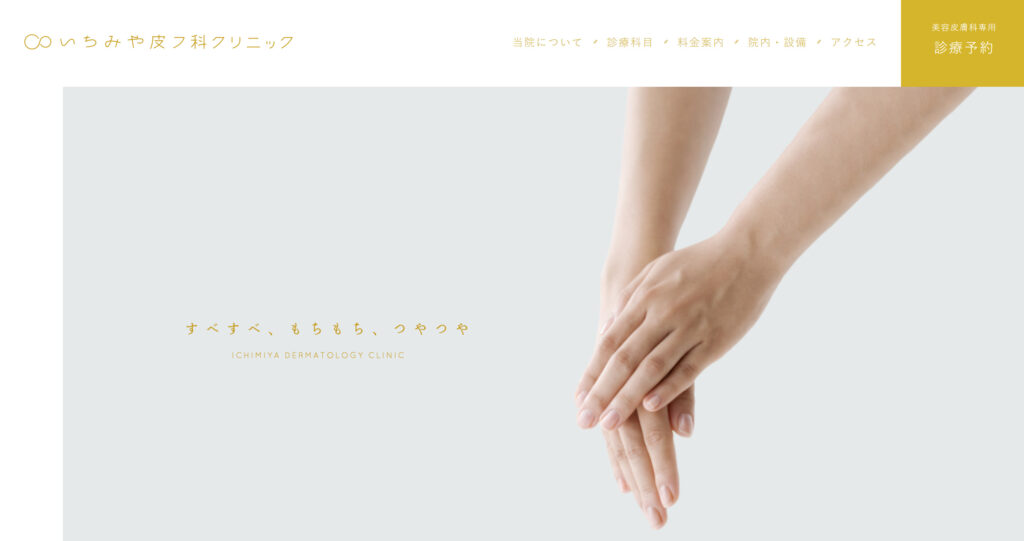 いちみや皮フ科クリニックは女性医師が院長を務める皮膚科・美容皮膚科で、院内は明るく開放的な空間となっています。